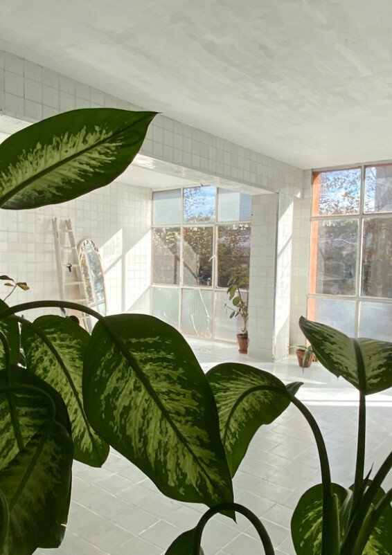 Big beautiful warehouse space with tile walls, plants and full windows. All painted in white. Can be used for events, showrooms, photo studio, pop up stores, dinners etc.